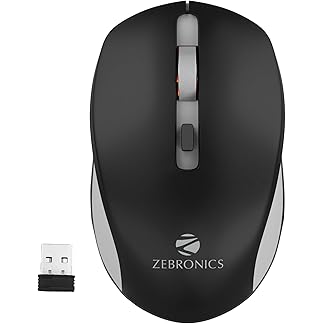 ZEBRONICS Zeb-Jaguar Wireless Mouse, 2.4GHz with USB Nano Receiver, High Precision Optical Tracking, 4 Buttons, Plug & Play, Ambidextrous, for PC/Mac/Laptop (Black+Grey)