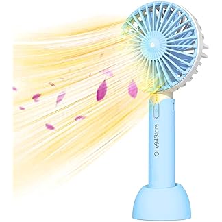 One94Store Portable Compact USB Mini Hand Fan With Powerful Brushless Motor, 3 Speeds, 1200mAh Rechargeable Battery (Up to 4Hrs), Ideal for Office, Kitchen, Outdoor, Makeup & Travel Use (Blue, X1)