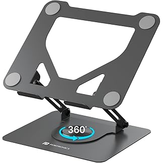 Portronics My Buddy K11 Metal Laptop Stand with 360° Rotation, Height & Angle Adjustable, Foldable Design, Improves Air Flow, Carbon Steel Body, 10 kg Max Weight for Laptops & MacBook (Black)