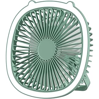 VERVENIX Rechargeable USB Fan with LED Light – Mini Ceiling Fan, 180 Degree Rotatable, Portable Handheld Design with 3-Speed Adjustment – Ideal for Camping and Outdoor Activities(Pack of 1, Green)