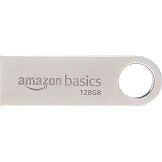 Amazon Basics 128 GB Flash Drive | USB 2.0 M Series | Temperature, Shock and Vibration Resistant | Metallic Silver