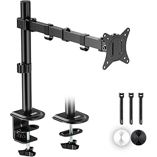 HOSS® Single Monitor Arm Desk Mount – Holds Screens up to 32 inches, Fully Adjustable Stand with C-Clamp and Grommet Base, VESA 75x75mm or 100x100mm, Black