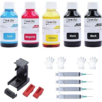 Needle 5x100gms Cartridge Refill Ink | Made in India | Compatible with Inkjet Printers | Easy Ink Refilling Solution (CMYKK)