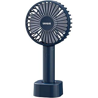 UN1QUE Mini Portable Hand Fan – Powerful Brushless Motor Small Fan, 3-Speeds, USB Rechargeable Fan with Base for Travel, Office, Kitchen, Face Makeup and Outdoor Use – For Women and Men (Navy Blue)