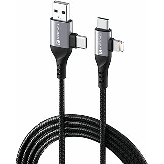 Portronics Konnect 4 IN 1 Unbreakable Nylon Braided Multi Functional Fast Charging Cable with Fast Data Transfer,Compatible with All Type C Android Smartphone & Lighting Device etc.(Black)