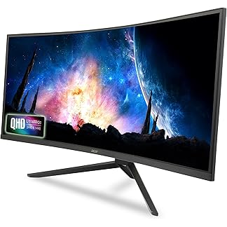 Acer ED343CUR 34 Inch UWQHD (3440×1440) Pixels VA Panel 1000R Curved Backlight LED Monitor I 1 MS, 180Hz Refresh I Delta E