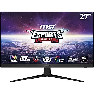 (Refurbished) MSI G2712 Esports Gaming Monitor | 27 Inch FullHD 1920×1080 | 170Hz Refresh Rate, 1ms Response Time | AMD FreeSync Premium Technology | Low Blue Light IPS Panel, Anti Glare | VESA Mount | Black