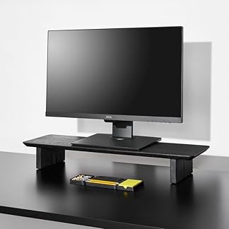 carpentray Wooden Computer Long Monitor Stand, Monitor Riser Desk Shelf Desktop Legs Stand TV Laptop Riser Desk (Walnut (66cm, Full Black)