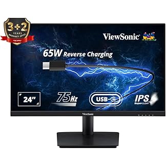 (Refurbished) ViewSonic 24 Inch IPS FHD Professional Monitor USB Type-C One Cable Solution with 65W Laptop Charge Back, Bezel Less, Wall Mount, 2X Speaker, HDMI, VGA, USB-C, Eye Care, 104% SRGB- VA2409-MHU