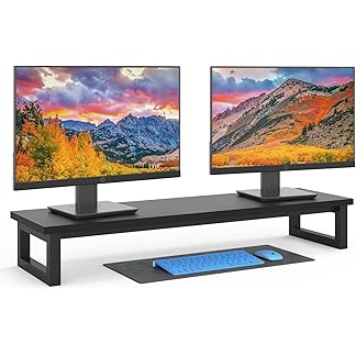 carpentray Dual Monitor Stand Riser, 30Inch Large Monitor Stands for 2 Monitors, Computer Monitor Stand, Wooden Desktop Oraganizer Shelf for Office Desk Computer,Laptop,TV (Black)