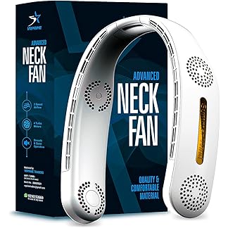 VRPRIME Portable Neck Fan Rechargeable | Neck Fan for Kitchen Women | Better then Desk Table Hand Fan | 4 Turbo Motor 3 Speed Low Noise Motors (White, 2400mAh)