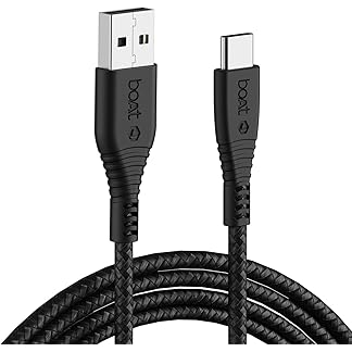 boAt Type C A325/A320 Tangle-free, Sturdy Type C Cable with 3A Rapid Charging & 480 Mbps Data Transmission Speed, Compatible with Smartphones & Tablets(Black)