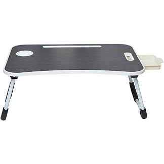 Amazon Basics Engineered Wood Foldable Laptop Table with Cup Holder, Tablet Groove and Mini Drawer (60L x 40W x 26H cm, Black)