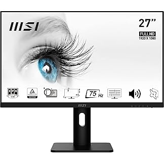 MSI PRO MP273P Business & Productivity Monitor 27 Inch FullHD (1920 x 1080) 75Hz Refresh Rate, IPS Panel with Eye-Friendly Technology, VESA-Mount Supported, Tilt/Swivel/Height/Pivot, Black