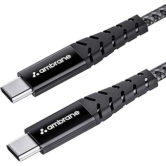 Ambrane Unbreakable 60W Fast Charging 1.5M Braided Type C to Type C Cable for Smartphones, Tablets, Laptops & Other Type C Devices, PD Technology, 480Mbps Data Sync (RCTT15, Black)