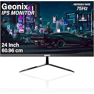 GEONIX 24 Inch IPS Computer Monitor Full HD 1920x 1080 Monitor, 3000:1 Contrast Ratio Frameless Display, HDMI and VGA, 16.7 Million Colors PC Screen, Black, 3 Years Warranty