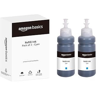 amazon basics T664 Refill Ink Bottle (Dual Pack) | Compatible with Epson L130/L360/L380/L361/L565/L210/L220/L310/L350/L355/L365/L385/L405/L455/L485 | Leak-Proof (70ml, Cyan)