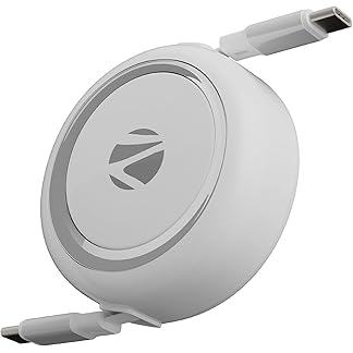 Zebronics Type C – Type C Retractable Cable, 60 Watts, Upto 480Mbps Data Sync, Fast Charging, 1 M, Compatible with iPhone 15 & 16 Series, iPad, MacBook, Samsung, Android (Wattz 60RCC1, White)