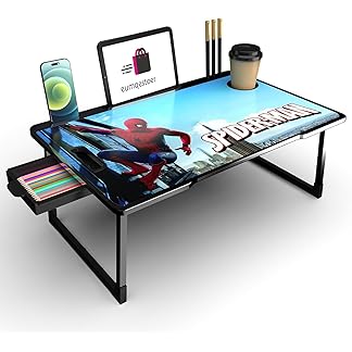 JAWNTW Foldable Wooden Mini Laptop Table for Bed, Study Table with Drawer, Tablet/Mobile Holder for Kids & Adults (US-Spiderman COTED)