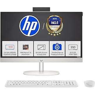 HP All-in-One, AMD Ryzen 5 7520U (16GB LPDDR5, 512GB SSD) IPS, Three-Sided, Micro-Edge, Anti-Glare, FHD, 23.8”(60.5 cm), Win 11 Home, Office 24, 5.27kg, FHD IR Camera, 24-cr0271in
