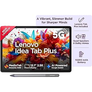 Lenovo Idea Tab Plus with Pen |Wifi +5G |12.1″ 2.5K Display, 800nits Peak Brightness |8GB RAM + 256GB ROM (Expandable upto 2TB)| MediaTek Dimensity 6400| 10200mAh|4 Speakers with Dolby Atmos|Luna Grey