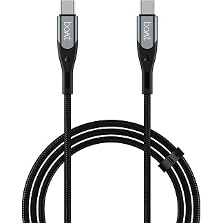 boAt Type C to C 65W Fast Charging Cable with 480 Mbps Data Transfer, Tangle-Free Cable in Premium Nylon Braided Design (Carbon Black)