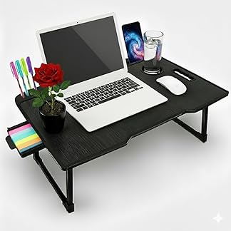 Kids & Adults Wood Multipurpose Foldable Laptop Table with Cup Holder | Table Home Study Writing Table, Foldable and Portable/Ergonomic Edges (UM KOT Black Mold)