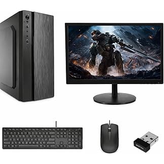 Desktop PC Bundle with Monitor, Keyboard, Mouse and USB Dongle, Black, Gaming Setup