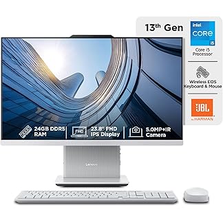 Lenovo IdeaCentre AIO Intel Core i5-13420H 24″ FHD (24GB RAM/512GB SSD/Win11/Microsoft 365 Basic + Office Home 2024/3Wx2 Harman/Wireless EOS Keyboard & Mouse,Grey), F0HN00VEIN All-in-One Desktop
