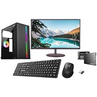 TECNICO Gaming Desktop PC Set, i5-4570, 8GB DDR3, 256GB SSD, 2GB Graphics, 22-inch IPS Borderless Monitor, RGB Keyboard Mouse Headphone, Webcam