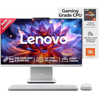 Lenovo Ideacentre AIO AMD Ryzen 5 7535HS 23.8″ FHD IPS All-in-One Desktop(8GB RAM/512GB SSD/Win11/Microsoft 365 Basic + Office Home 2024/3Wx2 Speakers/5MP Camera/Wireless Keyboard & Mouse),F0HR009BIN