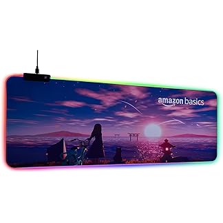 amazon basics RGB Mousepad | Durable Design | Wrist Support for Ergonomic Comfort | Customizable RGB Lighting with Multiple Modes | Easy Installation with USB-A Plug-and-Play Setup