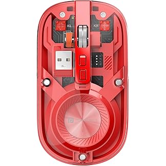 Portronics Toad 8 Transparent Wireless Bluetooth Mouse with Dual Wireless (BT + 2.4 GHz), Rechargeable Battery, Noise-Free Clicking, Show/Hide Desktop, Multi-Device Pair, Adjust Sensitivity (Red)