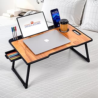 DIVIJA STORE Smart Multipurpose Foldable Laptop Table with Cup Holder, Study Table, Bed Table, Breakfast Table, Foldable and Portable/Ergonomic & Rounded Edges/Non-Slip Legs (Wood), 59 cm, 8 cm