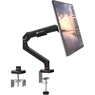 Portronics Aerolift Solo Gas Spring Monitor Arm, Desk Mount for 13–32 Inch Screens, VESA 75×75 & 100×100 mm, Full Motion Tilt/Swivel/Rotation, C-Clamp & Grommet Installation, Aluminium Build