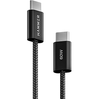 HAMMER Type C to Type C Cable 60W Braided, PD Fast Charging, Data Sync, 1.2 Meter Tangle Free Wire, Compatible with all C-Type Enabled Devices (Black)