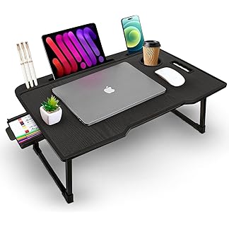 AVZEEGO Kids & Adults Wood Multipurpose Foldable Laptop Table with Cup Holder | Table Home Study Writing Table, Foldable and Portable/Ergonomic Edges (UC KKOT Black -Part 2)