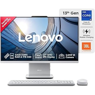 Lenovo IdeaCentre AIO 13th Gen Core i9-13900H 27″ QHD IPS (32GB RAM/1TB SSD/Windows11/Office 24/3Wx2 Harman Speakers/Wireless EOS Keyboard & Mouse, Grey), F0HM00PQIN All-in-One Desktop