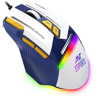 Ant Esports GM333 RGB Wired High End Optical Ergonomic Gaming Mouse with 12800 DPI 1.5M Braided Cable Comes with Latest Inbuilt Software Huano Switches with Rubber Coated Topcover -Blue/White/Yellow