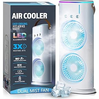 Aluan 4000mAh Double Ended Spray Mini Fan Powerful Small Personal Portable Fan Speed Adjustable USB Rechargeable LED Light Cooler Touch & Remote Control for Home Office Outdoor Travel (White)