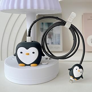 INEFABLE Charger Case Cover Protector with 3D Cute Pattern for iPhone Charger only 18W & 20W, Data Charging Cable Wire Saver Protective Cable Cover Full Protection – Set Of 1 (Penguin)