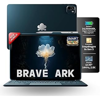 Brave Ark (SmartChoice) Android Tablet with Pen + BT-Keyboard| 12.95″(32cm) 2.8K 144Hz Display| Snapdragon 8s Gen 3| AI-Enabled|12GB RAM, 256GB ROM| Segment’s Biggest 14550mAh Battery| 8 Speakers|WiFi