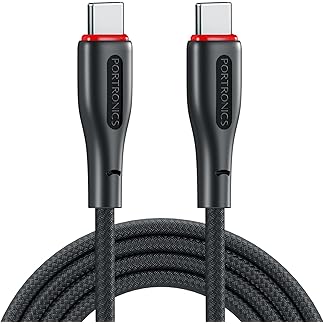 Portronics 100W Konnect B 1.5M Type C to Type C 5A Fast Charging Cable With E-Marker Chipset, Strong Braided Cable, Compatible With Laptops, Smartphone, Tablet, iphones, iPads & other type C Device
