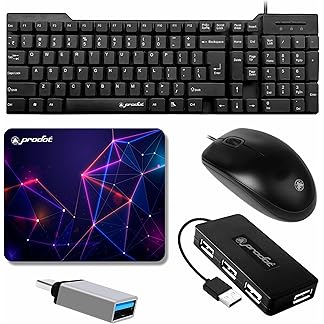 Prodot 5-in-1 Wired Combo Pack | Wired Keyboard + Comfy Optical Mouse + 4 in1 Port USB Hub + Type C OTG + Anti-Slip Mouse Pad | for Laptop/Desktop/Windows