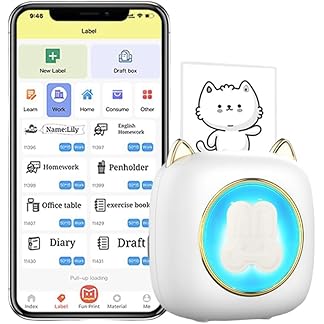 CASON Portable Mini Pocket Printer for Kids, 7 Color LED Display Thermal Printer for iOS/Android Phones, Bluetooth Printing Machine for Stickers, Photos, Labels