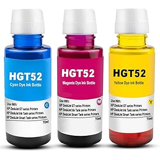 Linnex Refill Multicolor Dye Ink for HP GT52 Compatible for HP Ink Tank 115, 310, 315, 319, 410, 415, 416, 419, 455, 500, 515, 530, 615, GT 5810, GT 5811 (GT 52 Refill Ink Bottle C./M./Y., 70ml)