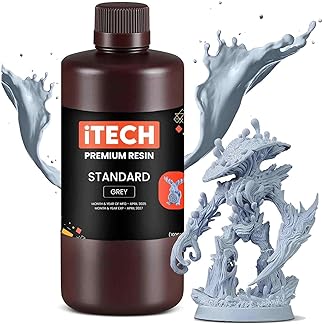 Itech Premium Standard 3D Printer Resin – (Grey) 1000g High Precision UV Curing Photopolymer for LCD & DLP Printers Low Odor, Fast Curing, Exceptional Detail.