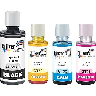 GT53XL GT52 Refill Ink Bottle | Compatible with HP Printers – 115,310,315,319,410,415, 416,419,455,500,515,530,615,GT 5810, GT 5811, GT 5820 | High Print Quality | Leak-Proof (4 Color Set : B/C/Y/M)