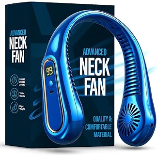 Neck Fan, Portable Bladeless Neck Fans Rechargeable, 4000 mAh Battery USB 360° Airflow Super Quiet 3 Speeds Personal Wearable Neck Fan, Collar Fan for Neck Outdoor Indoor for Women Men-Blue