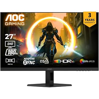 AOC CQ27G4 27″QHD 1500R Curved Gaming Monitor, 180Hz,0.5ms MPRT, HDR10, Adaptive Sync, 300 nits Brightness, Fast VA Panel, Height Adjustable Stand, Gaming Modes, Low Input Lag, Frameless, HDMI 2.0, DP